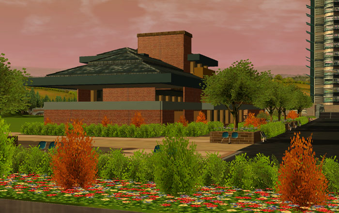 The Fox Ridge version of the Robie House. This is very difficult to build in RCT due to lack of appropriate materials but I got close enough that anyone who knows the house probaly can see the resemblence.